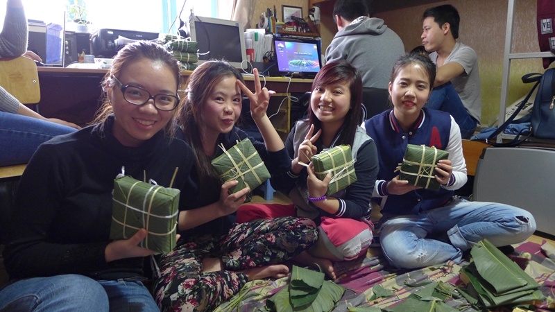 Năm nào cũng vậy, du học sinh Việt trên khắp thế giới đều tổ chức những hoạt động đón Tết dù xa quê hương. Hội du học sinh của trường ĐH Kinh tế quốc dân Kiev, Ukraine cũng quây quần tổ chức gói bánh chào Xuân Bính Thân 2016. |