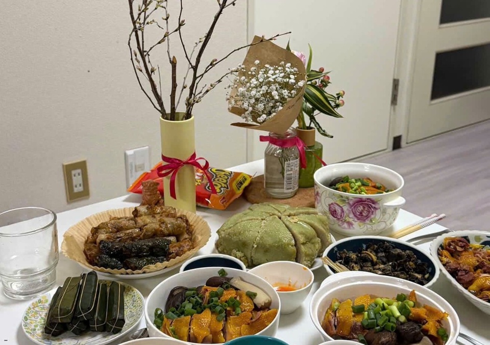 Dù đón Tết xa nhà, nhiều du học sinh vẫn sửa soạn mâm cỗ đón Tết. Dù phải di chuyển xa để mua nguyên liệu, thậm chí phải nhờ người nhà gửi đồ qua, các du học sinh vẫn dành thời gian làm những món ăn ngon để có mùi Tết, vị nhà.