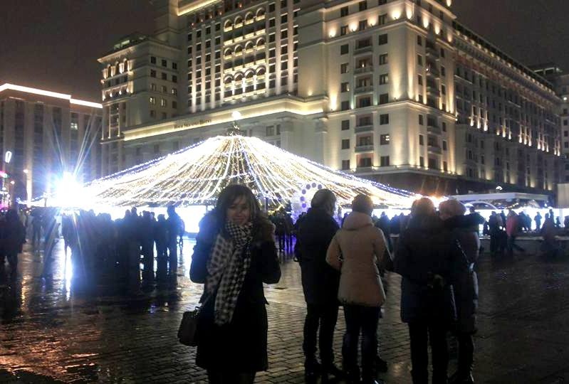 | Nguyễn Hoài Thu (Đại học tổng hợp quốc gia Astrakhan, Nga) chọn đón giao thừa tại trung tâm thương mại cùng em gái, do thời tiết ngoài trời rất lạnh, nhiệt độ xuống tới -9 độ C và tuyết rơi nhiều. |