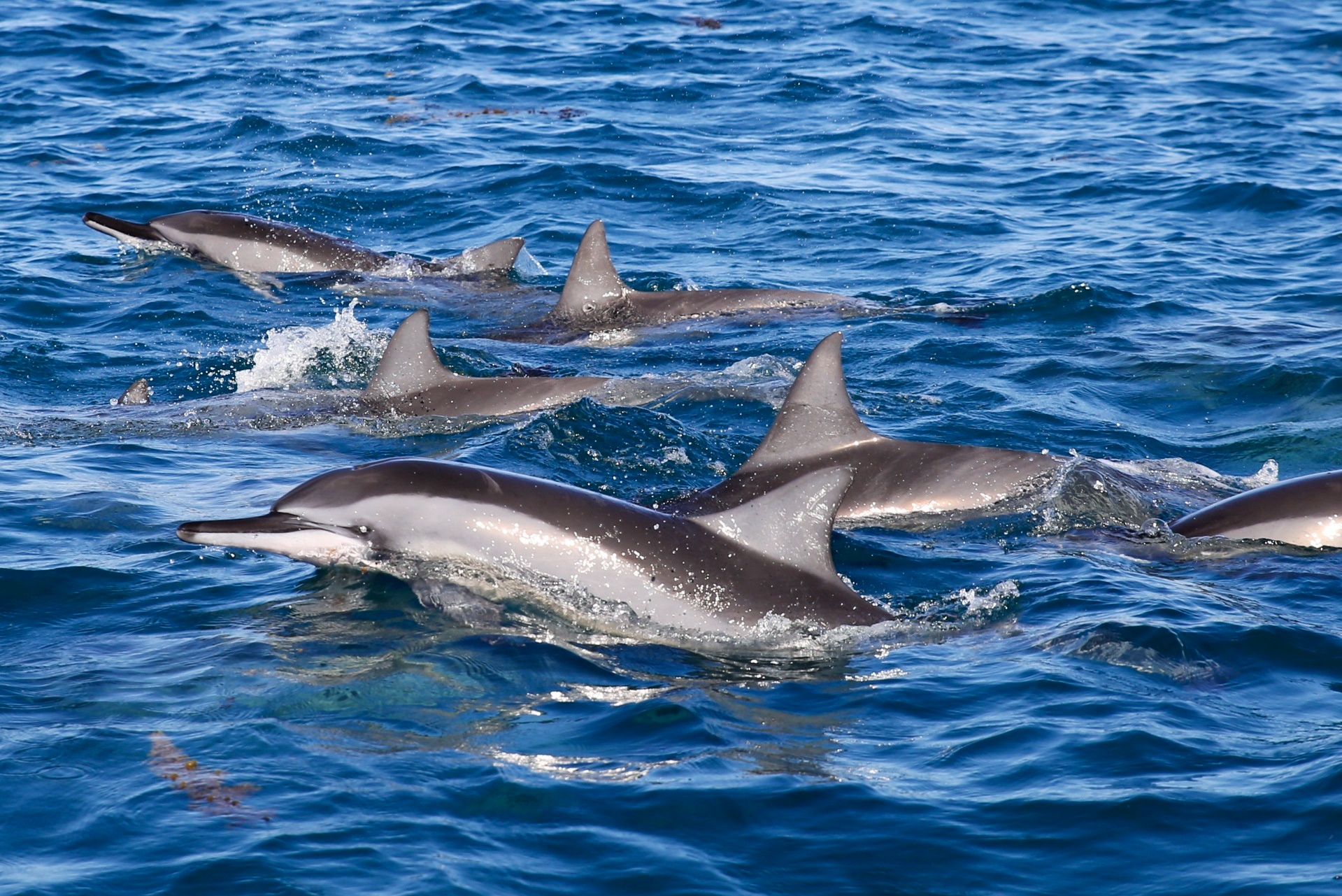 Cano dừng ở khu vực phía nam đảo, cách bờ chỉ khoảng 1 km. Lúc này cá heo bắt đầu từng đàn bơi về phía tàu.