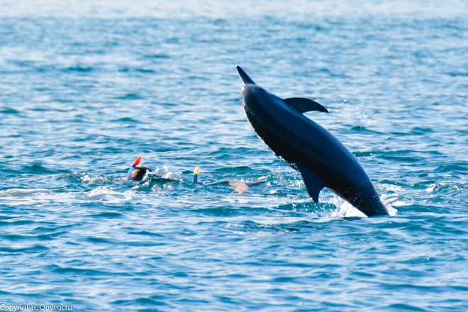 Du khách sẽ có cảm giác phấn khích khi cá heo nhào lộn ở khoảng cách rất gần.