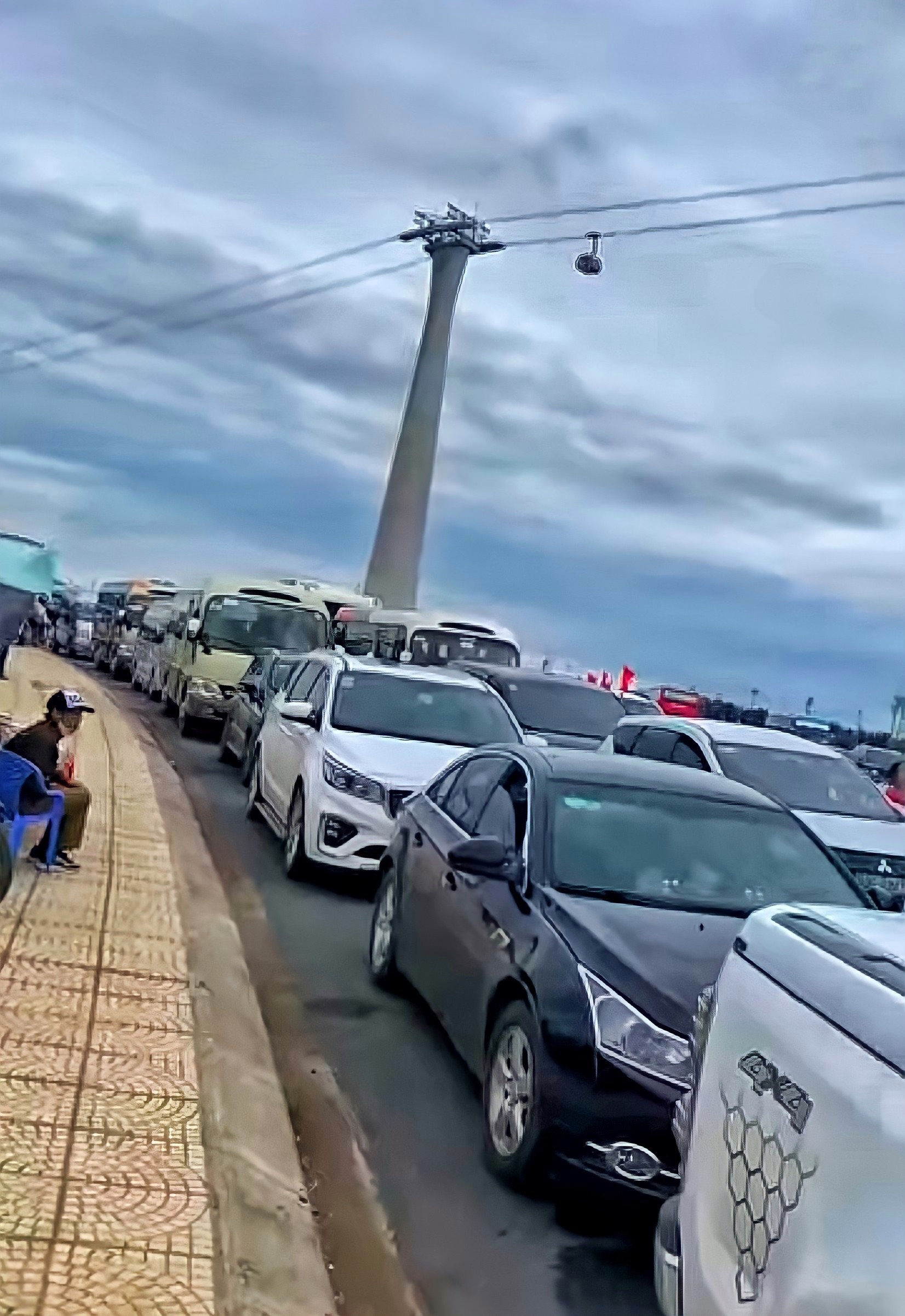 Hàng trăm du khách khác cũng chịu cảnh tương tự. Từ trưa, do ùn tắc, mọi người phải ăn mì gói đổ nước sôi do người dân xung quanh bán. Đến tối, bữa ăn cũng chỉ có mì gói và trứng luộc. Nhiều người muốn quay về nhưng quá tắc nên đành chịu.