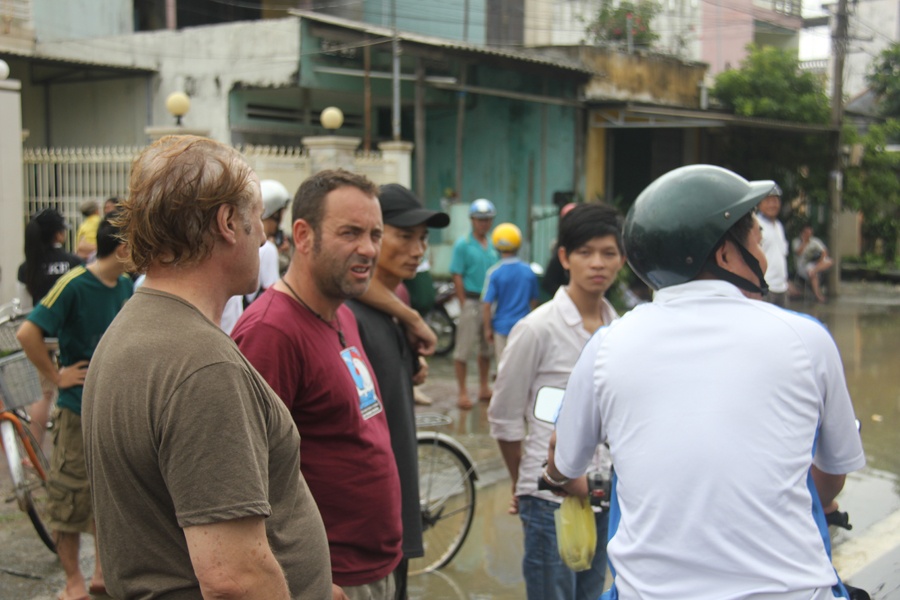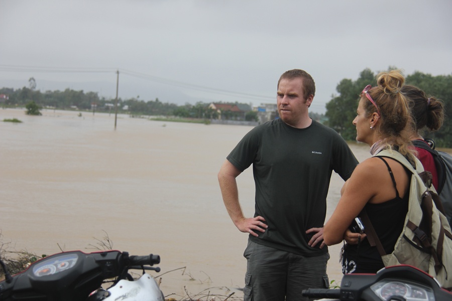 | Đoàn khách nước ngoài dự định đi suốt chiều dài Việt Nam để tham quan, khám phá nhưng nước lũ đã "níu chân" họ tại khu vực giáp ranh giữa huyện Tư Nghĩa và TP.Quảng Ngãi trong 2 ngày nay. Nhiều khu khách than phiền rất mệt mỏi, nước lũ làm đảo lộn mọi kế hoạch. |