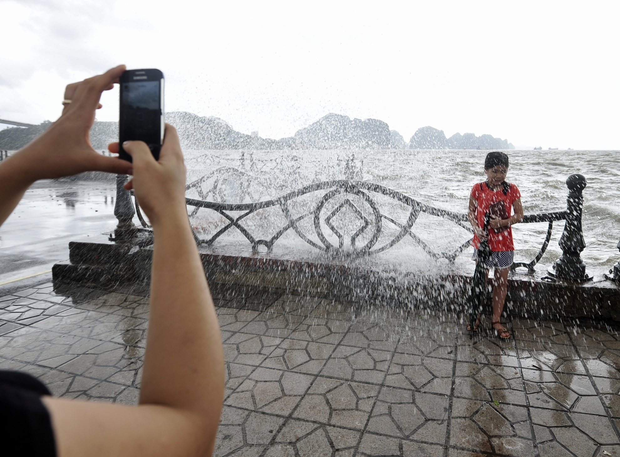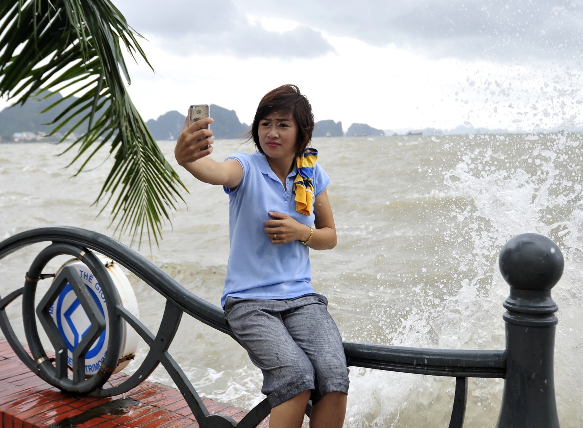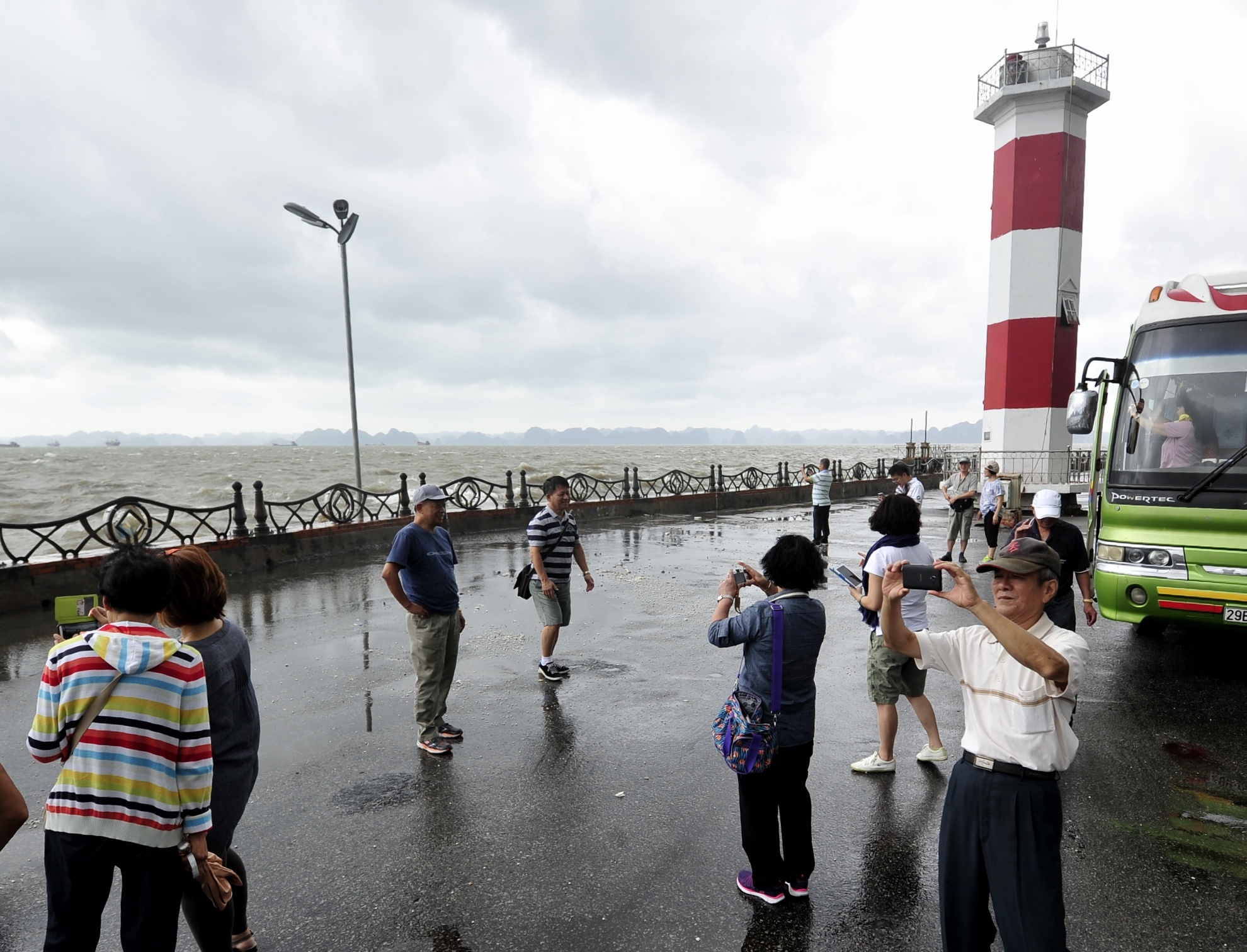 | Tại Quảng Ninh, nhiều du khách thăm vịnh Hạ Long thích thú trước khung cảnh sau bão. |