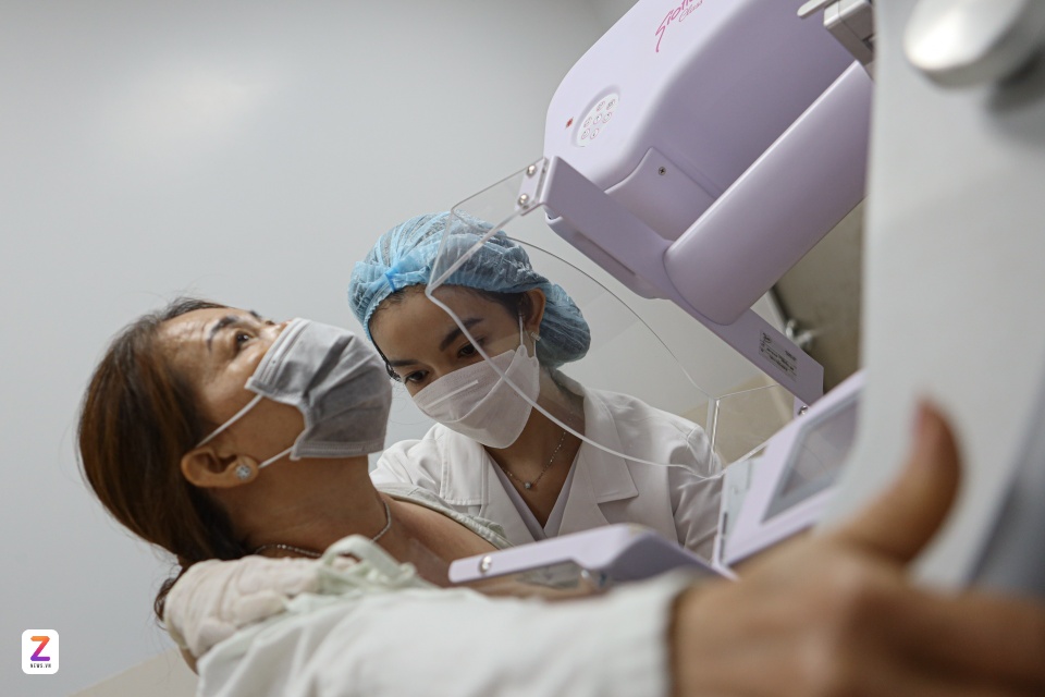Tầm soát ung thư vú tại Bệnh viện Ung bướu TP.HCM. Ảnh: Duy Hiệu. |