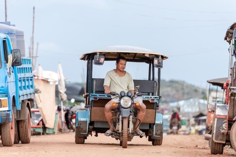 Người đàn ông lái xe dẫn động 4 bánh ở Siem Reap, Campuchia. Ảnh: Vann Chan Thada/Kiripost. |