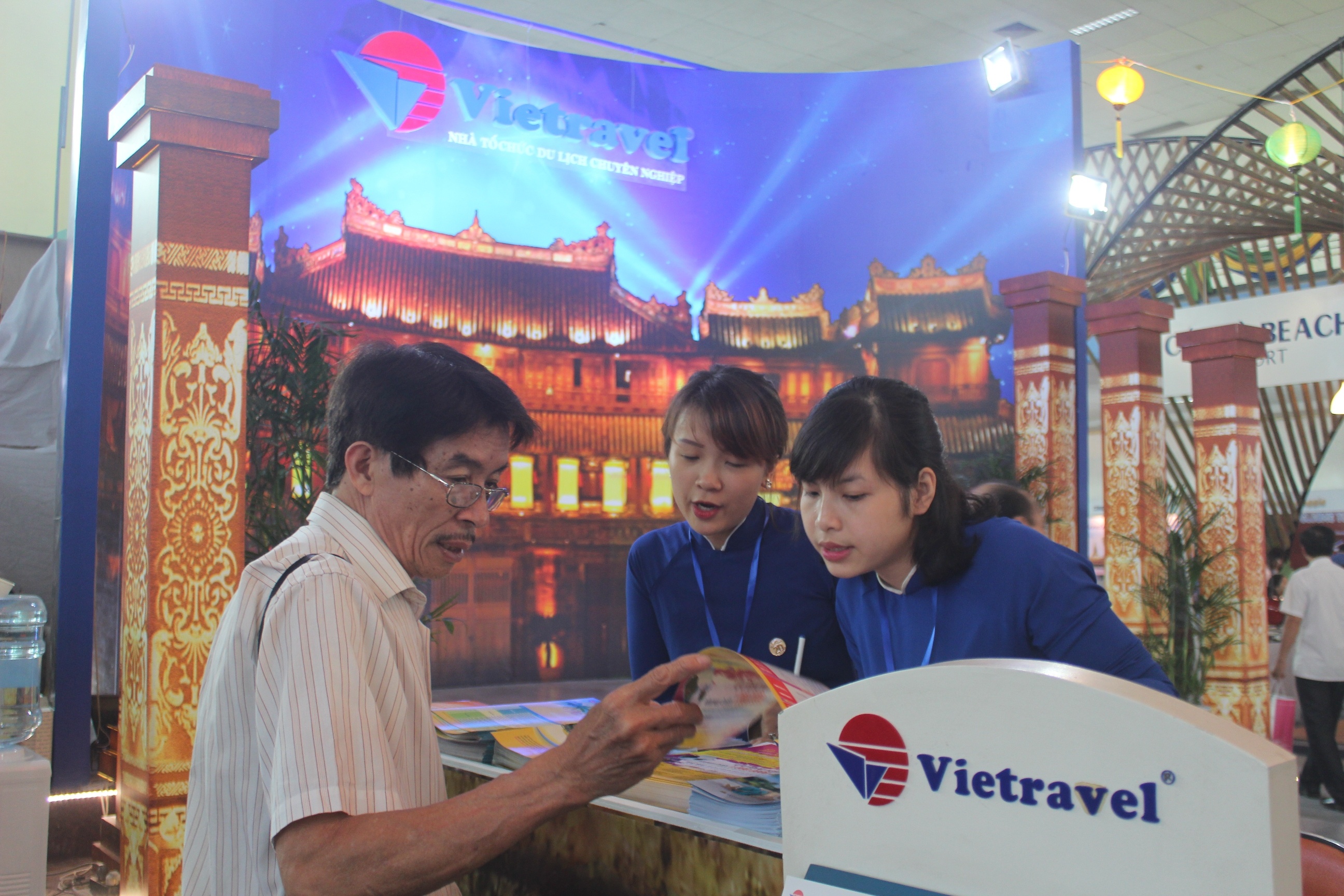 Các du khách khi đến với gian hàng Vietravel sẽ được tư vấn và mua tour với giá kích cầu hấp dẫn. Bạn có thể chụp ảnh check-in với phông nền resort đẹp mắt. Ngoài ra, bạn còn có cơ hội tham gia các gameshow có thưởng vui nhộn. Bạn có thể tham gia làm khảo sát để nhận các coupon giảm giá tour; được tặng kèm voucher California Fitness & Yoga center/ Charm Nguyen Spa, thẻ Gold Card của hệ thống Golden Gate, voucher mua sắm vali trị giá 1,5 triệu đồng; được hoàn ngay 300.000 đồng cho mỗi hóa đơn 10 triệu đồng thanh toán bằng thẻ MasterCard khi đăng ký tour.