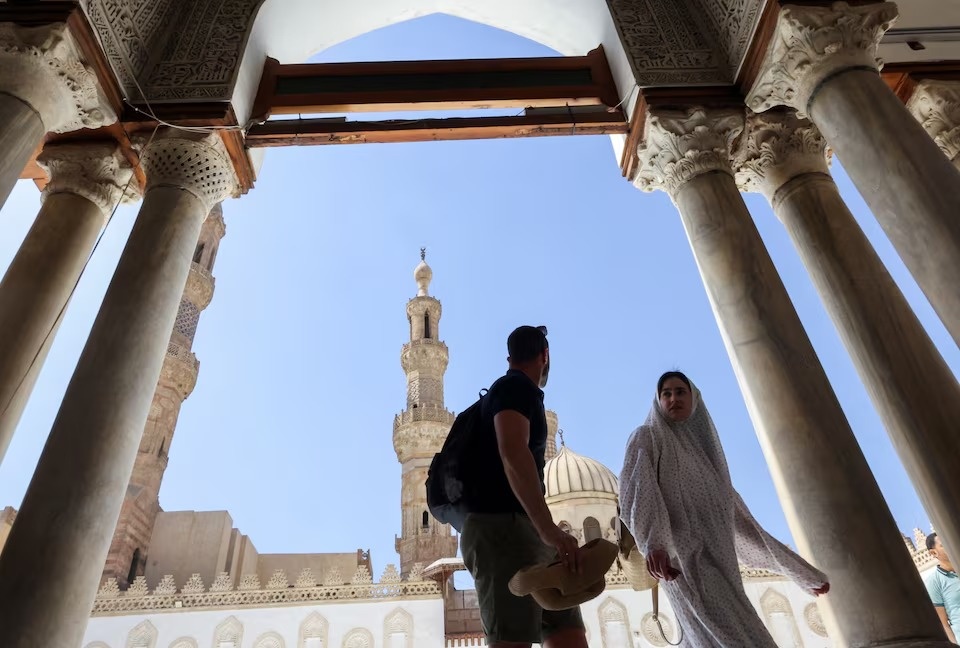 Du khách nước ngoài tham dự sự kiện kỷ niệm 1.083 năm thành lập Thánh đường Al-Azhar theo lịch Hijri, diễn ra trong tháng Ramadan tại khu Hồi giáo cổ ở Cairo, Ai Cập, ngày 29/3/2023. Ảnh: Reuters. |