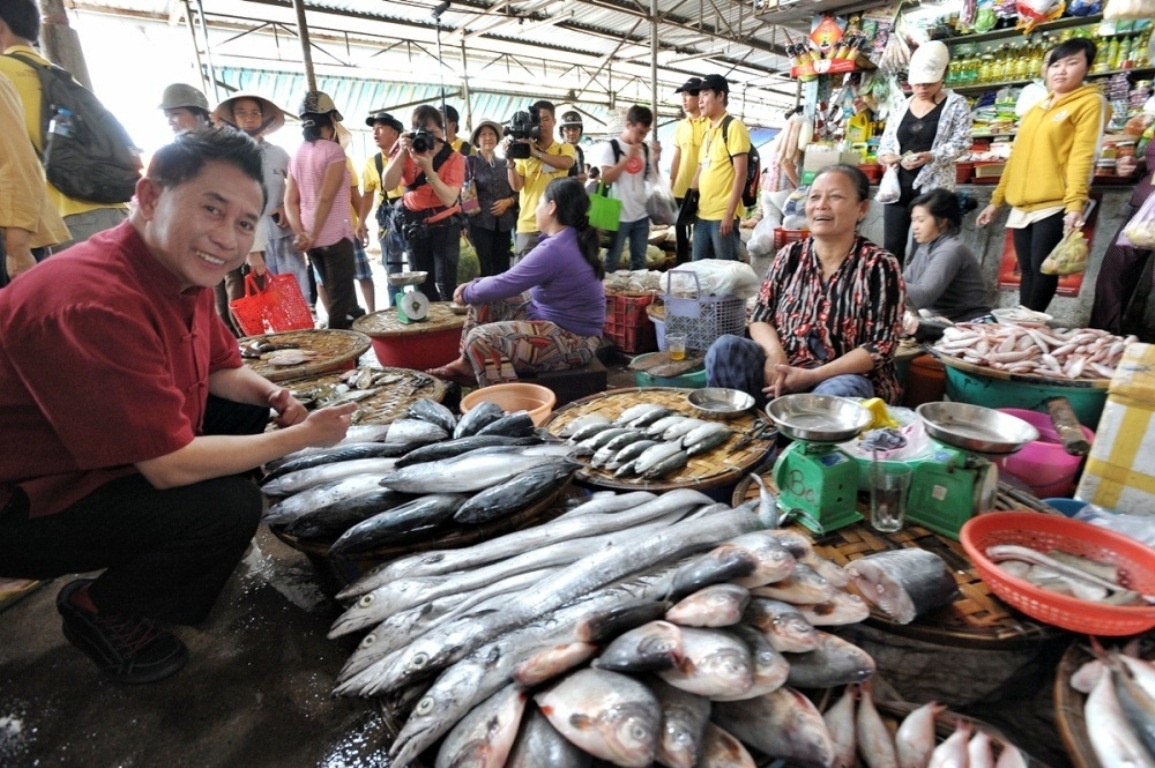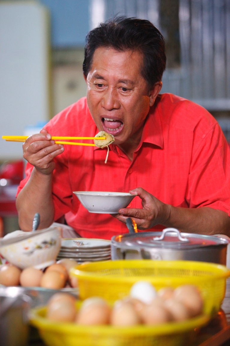 | Martin Yan thưởng thức bánh căn tại Phan Thiết. |
