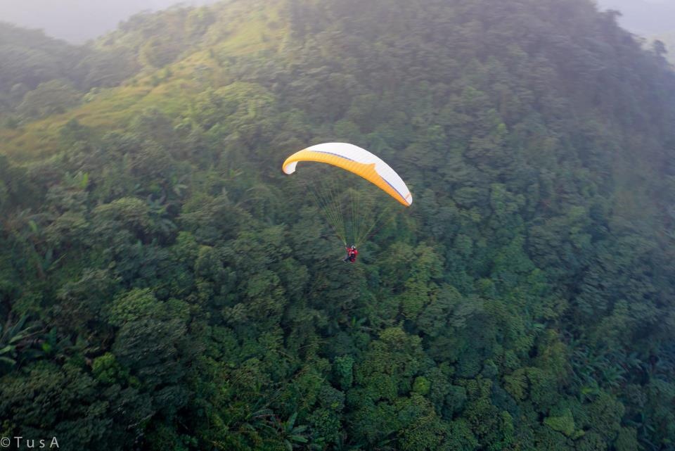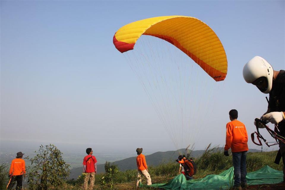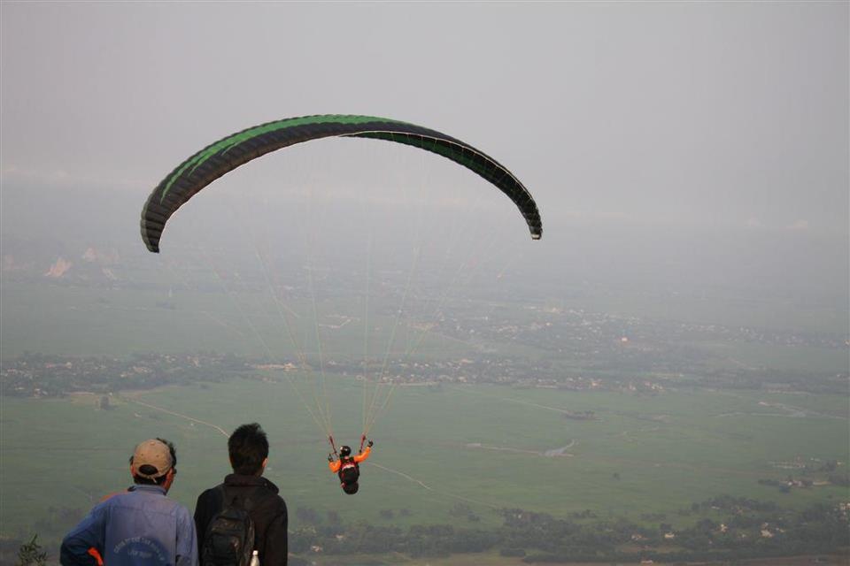 | Từ góc chụp này có thể thấy được sự mạo hiểm của môn dù lượn. |