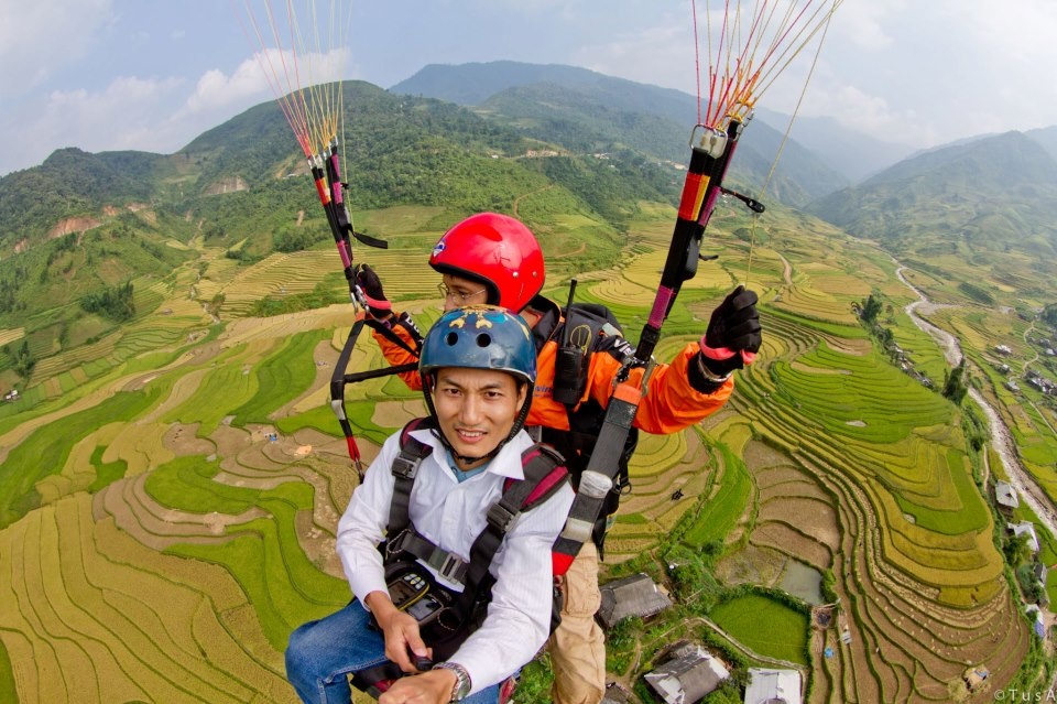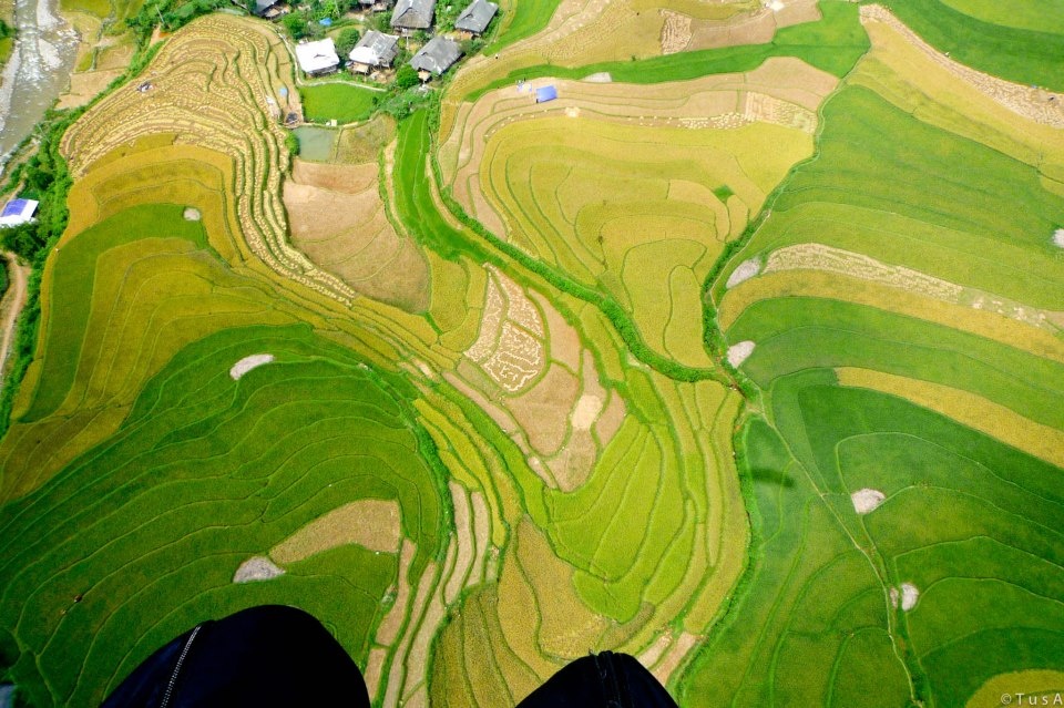 | Ruộng bậc thang của người Thái, người Mông ở Tú Lệ được chụp lại từ trên dù lượn trông như những dải lụa. Cảm xúc của một thành viên có nick-name Chuột Sâu Răng sau lần đầu tiên thực hiện thành công chuyến bay của mình: "Bên tai tôi lúc này dường như vẫn còn đang nghe thấy tiếng vù vù của gió, đôi chân vẫn còn như đang lơ lửng trong cái khoảng không xanh vô tận của màu núi, màu cây cỏ, màu của gấm vóc Việt Nam".
