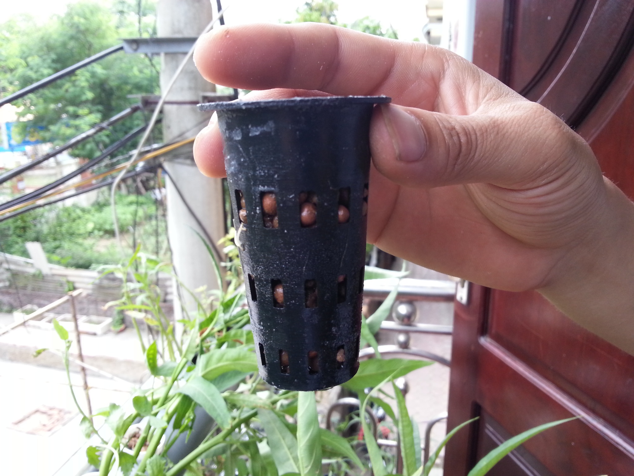 | Giỏ trồng nằm sâu dưới đáy ống nhựa nên dù gốc rau có nặng mức nào cũng không thể rơi ra ngoài. Những giỏ hạt rau không cần che đậy hay chăm sóc. |
