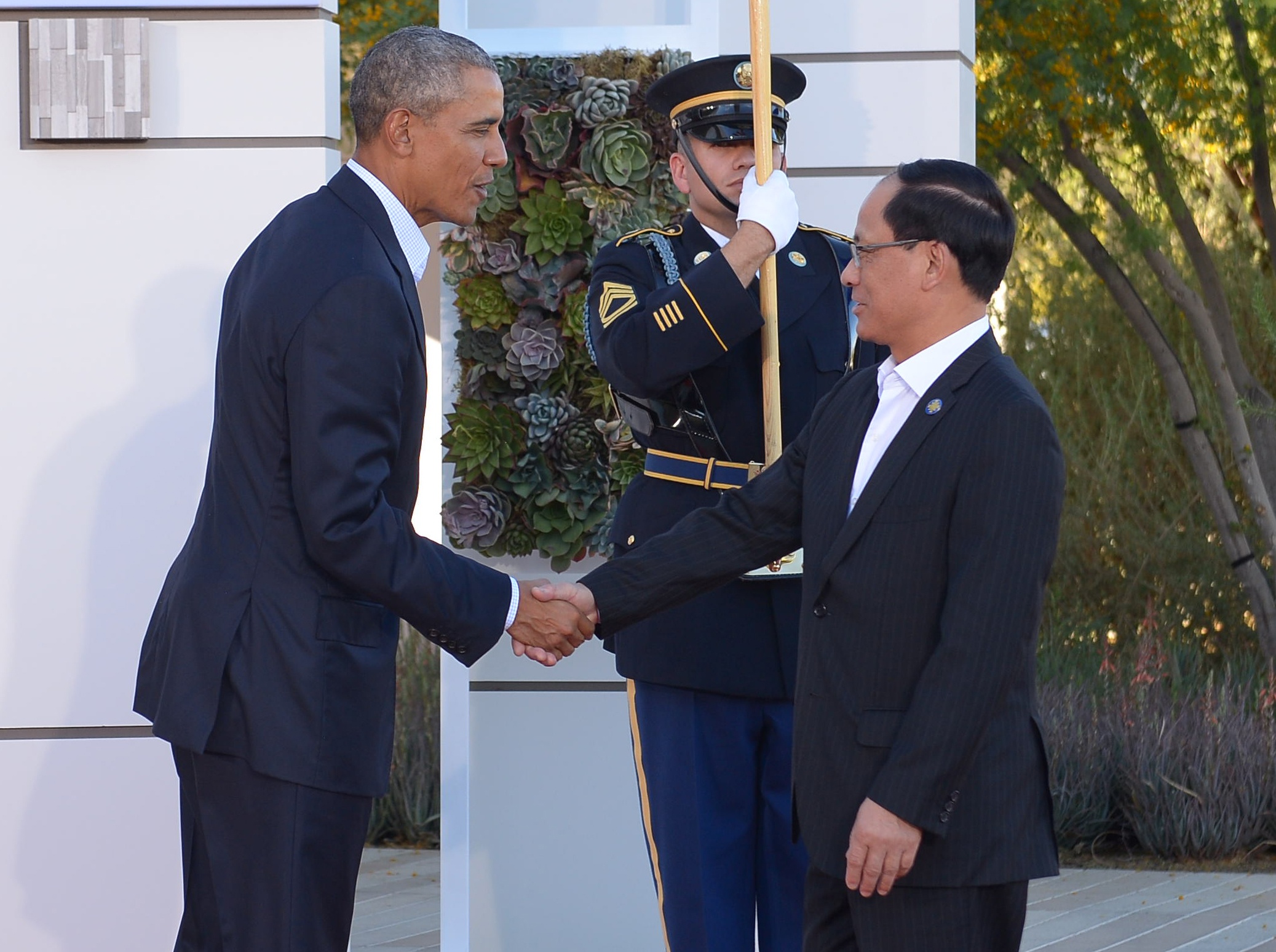 Tổng thống Mỹ Barack Obama đón tiếp Thủ tướng Nguyễn Tấn Dũng dự hội nghị cấp cao Mỹ - ASEAN ở Sunnylands. Ảnh: AFP |