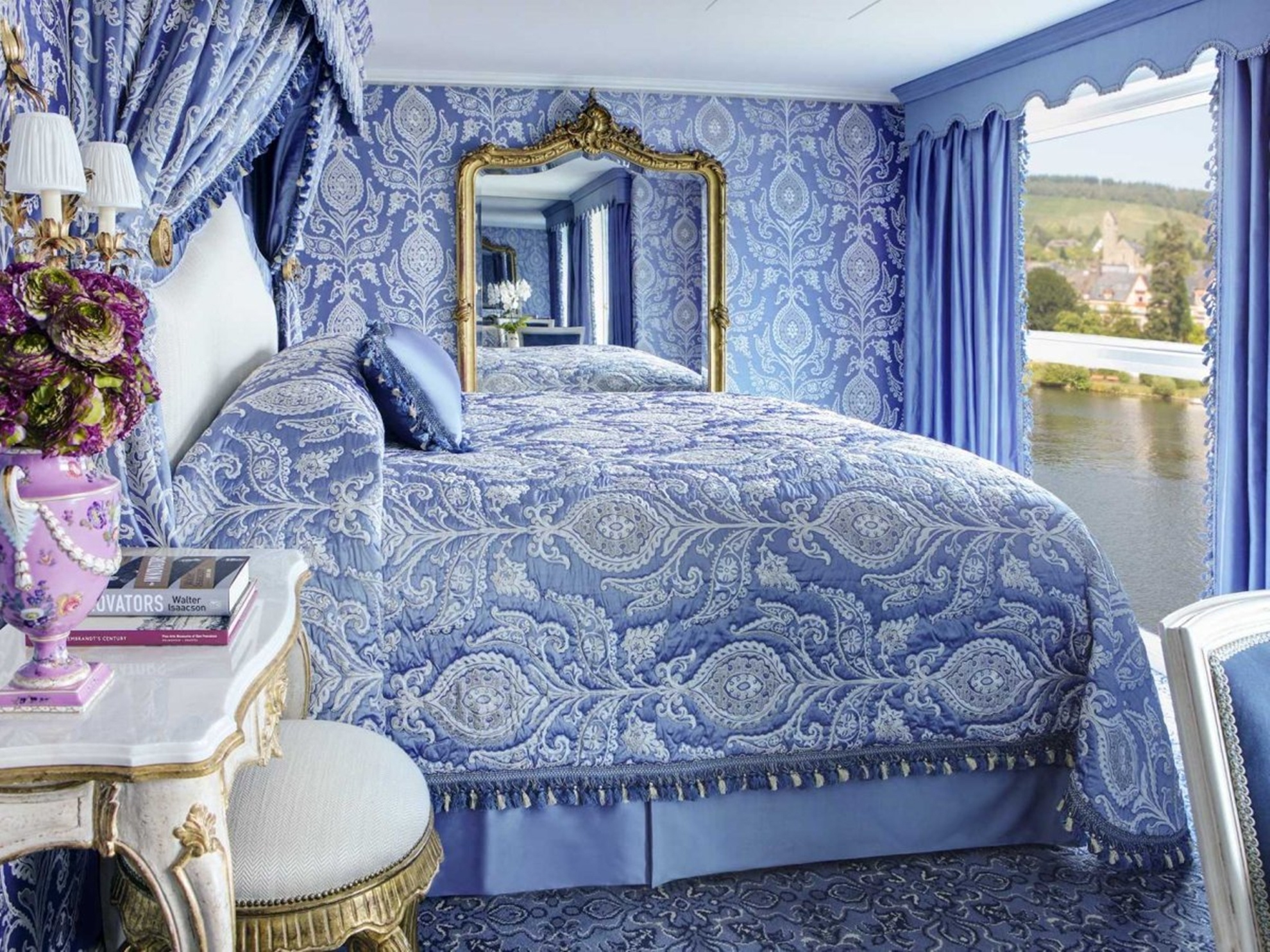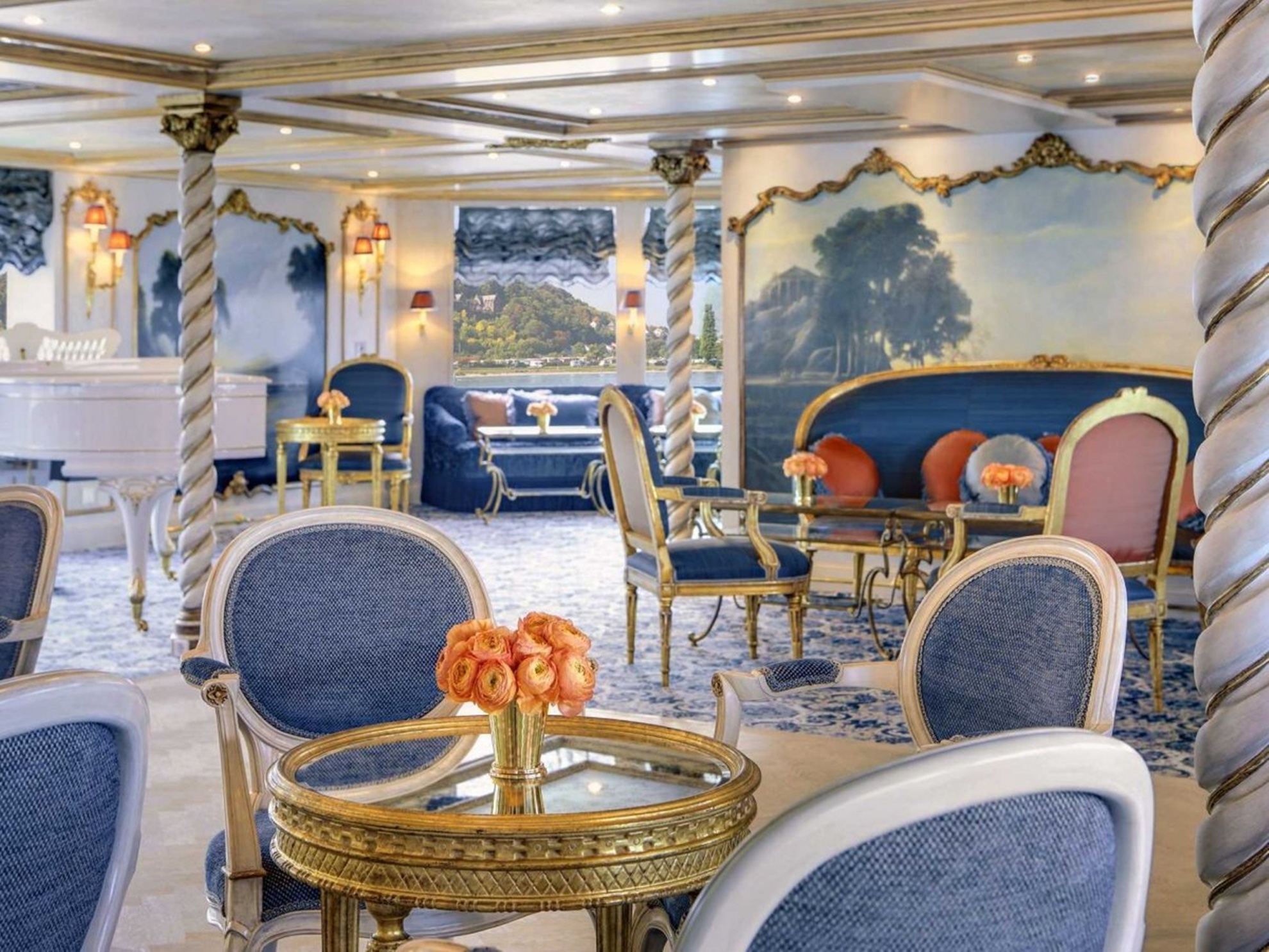 Công ty Uniworld điều hành 19 du thuyền với lộ trình đi dọc các dòng sông tại châu Âu, Nga, Ai Cập và Trung Quốc. Mới đây, công ty này ra mắt một siêu phẩm có tên S.S. Maria Theresa. Theo Business Insider, đây là du thuyền trên sông xa xỉ nhất thế giới với 75 phòng, 57 nhân viên và sức chứa 150 khách. Nội thất bên trong S.S. Maria Theresa được ví như cung điện trên sông. Hải trình của du khách kéo dài khoảng 8-15 ngày, với mức giá từ 3.200 tới 12.000 USD/người. |