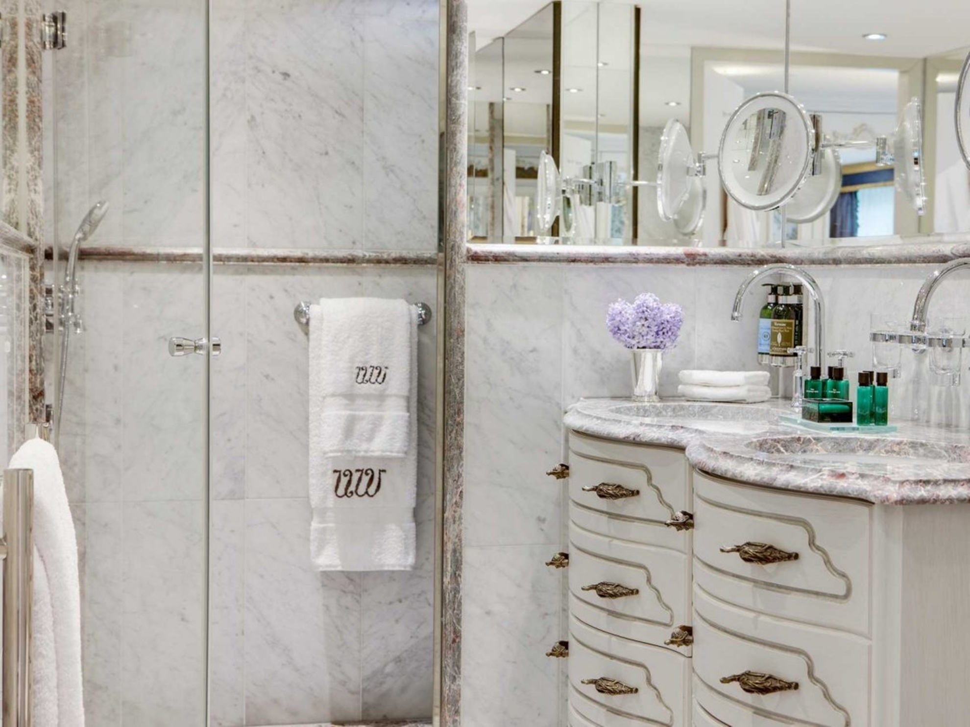 Bồn tắm lát đá cẩm thạch là nơi thư giãn tuyệt vời cho du khách. |