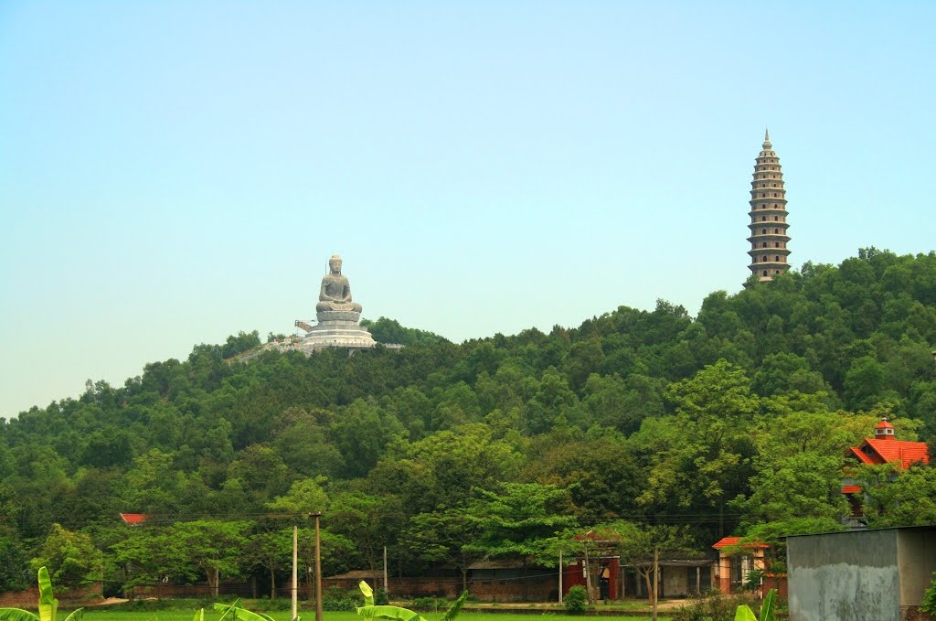 Tượng đức Phật và tháp Báo Thiên tại chùa Phật Tích, Bắc Ninh. |