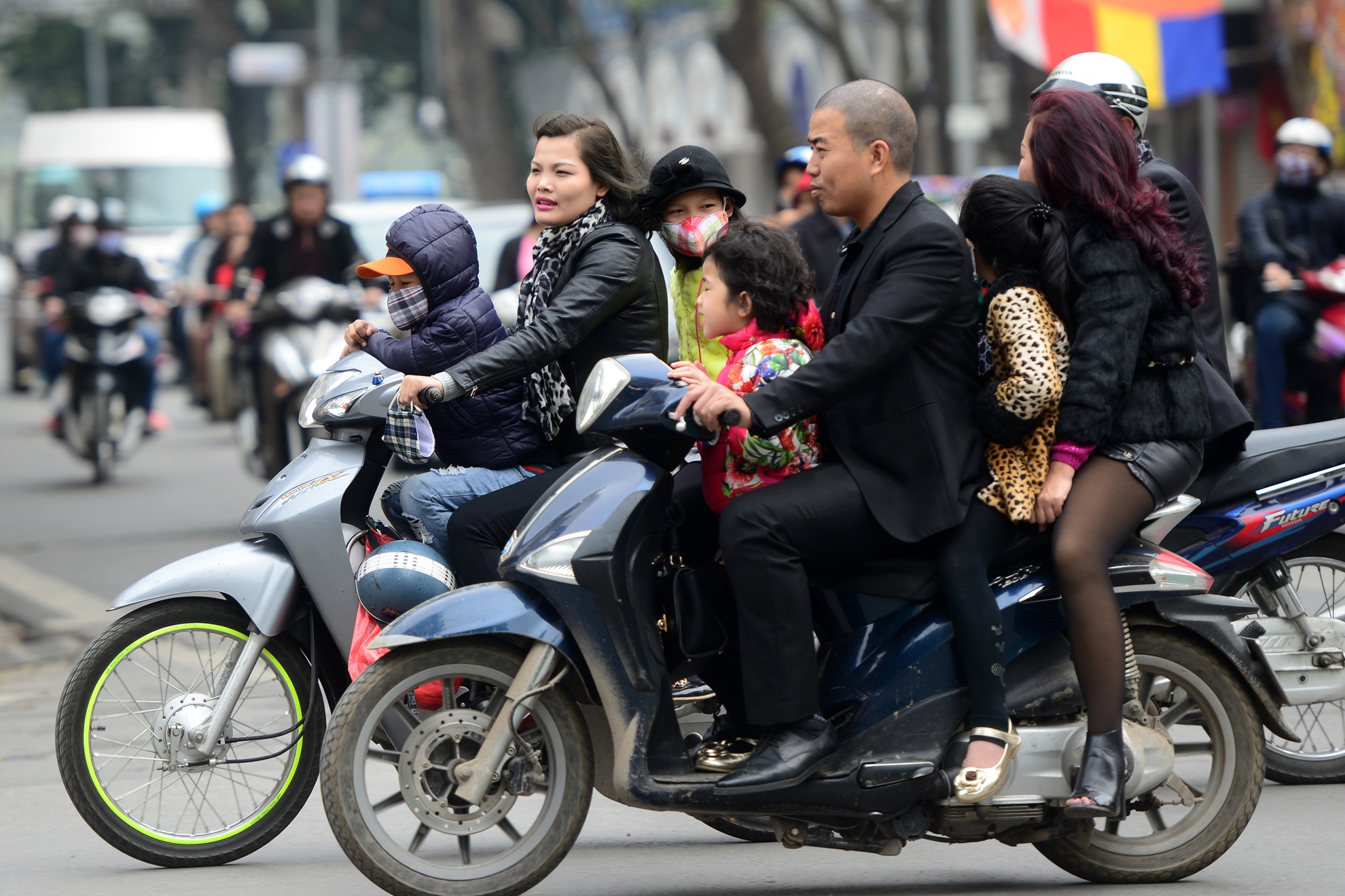 Tại Hà Nội, Thanh Hoá, TP HCM, tình trạng người tham gia giao thông bằng xe máy không đội mũ bảo hiểm, kẹp 3, kẹp 4, lạng lách đánh võng, đi ngược chiều, vượt đèn đỏ diễn ra phổ biến.