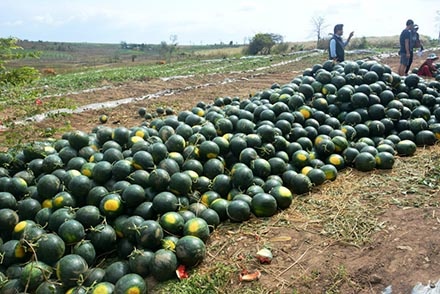 Dưa hấu tại Gia Lai rớt giá xuống còn 300 đồng/kg. |