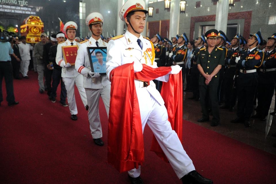 11h30, sau lễ truy điệu, linh cữu các sỹ quan được đưa ra xe tang để về nơi an nghỉ cuối cùng.
