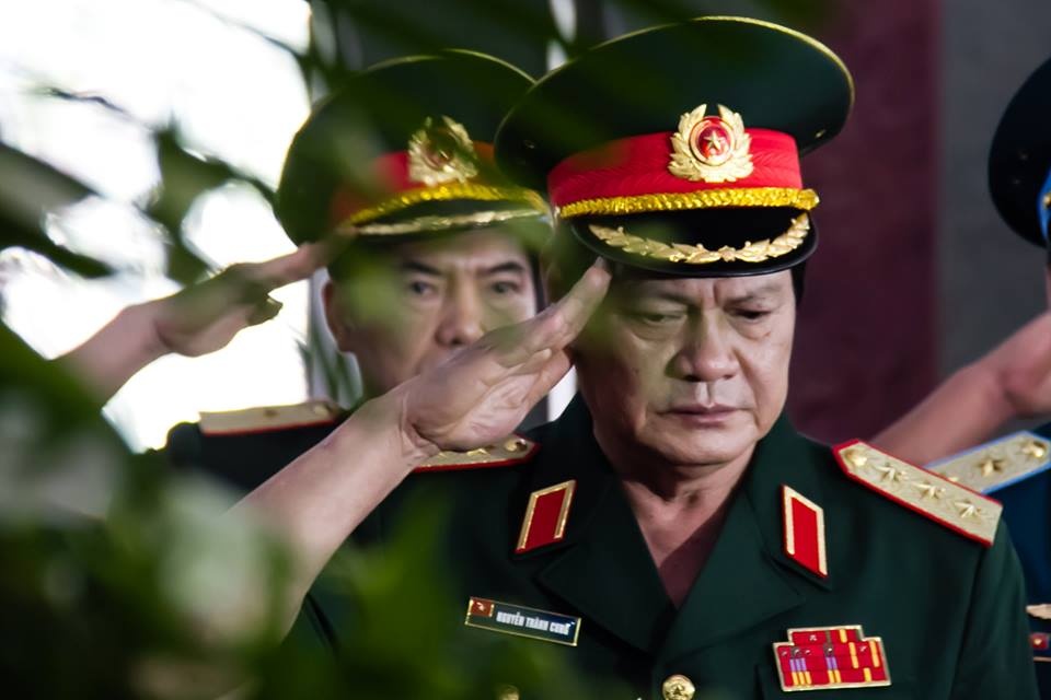 | Thượng tướng Nguyễn Thành Cung - Thứ trưởng Bộ Quốc phòng - viếng các chiến sĩ hy sinh. |