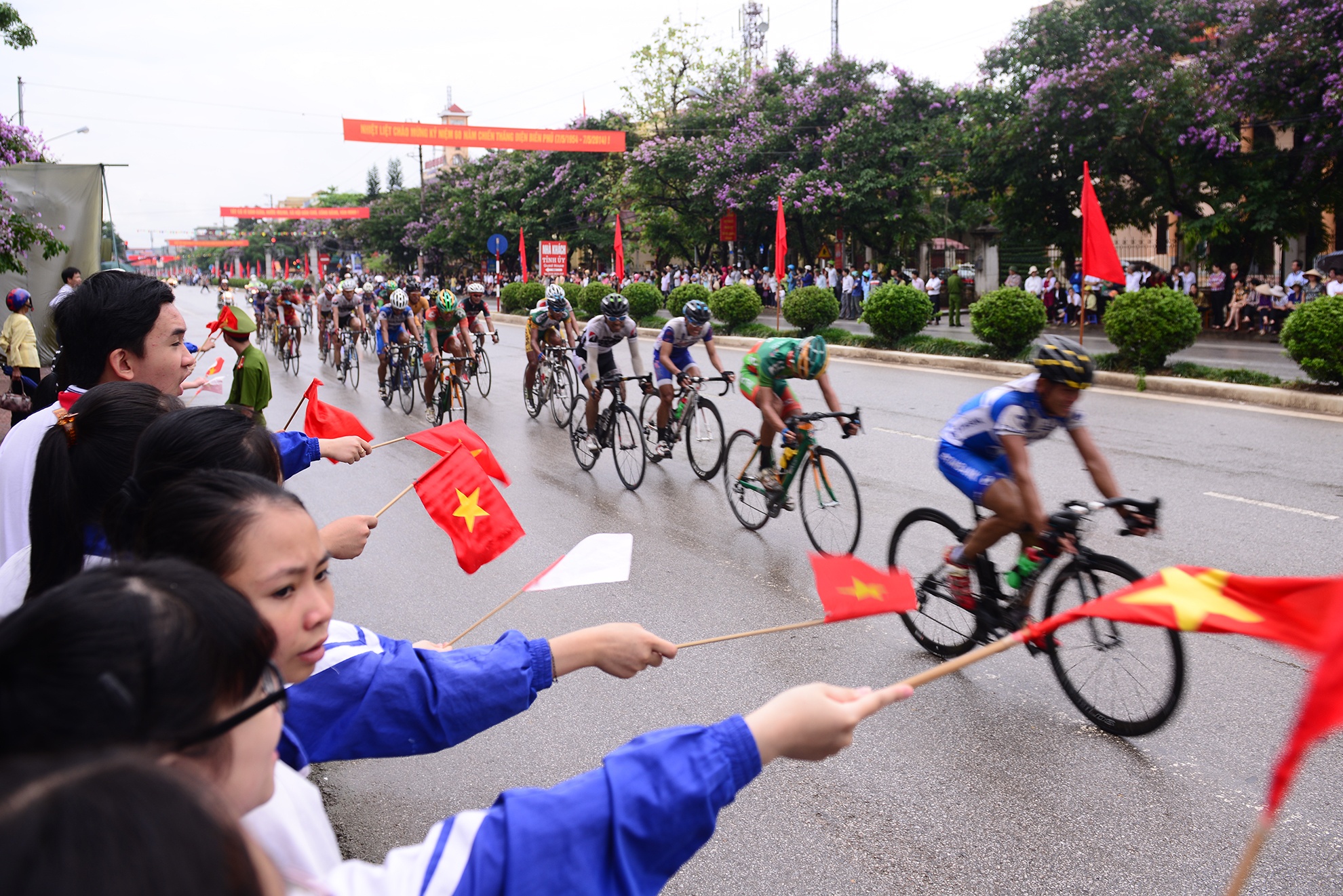 | Đây là năm thứ 3, Báo Quân đội nhân dân phối hợp với Liên đoàn Xe đạp - Mô tô thể thao Việt Nam và Tổng cục TDTT tổ chức cuộc đua xe đạp toàn quốc mở rộng “Về Điện Biên Phủ 2014 - Cúp Báo Quân đội nhân dân”. Hàng ngàn người dân đã đổ ra dọc đường Võ Nguyên Giáp cổ vũ đoàn đua. |