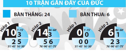 Thomas Mueller in dấu giày vào tổng cộng 16 bàn của Đức tại World Cup: 10 bàn và 6 kiến tạo.