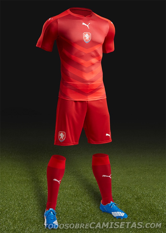 | Trang phục thi đấu mới của đội tuyển Séc lấy ý tưởng từ mẫu áo đấu tại EURO 1996, giải đấu mà họ chơi rất thành công khi lọt vào tới trận chung kết và chỉ thua Đức bởi bàn thắng vàng của Oliver Bierhoff. |
