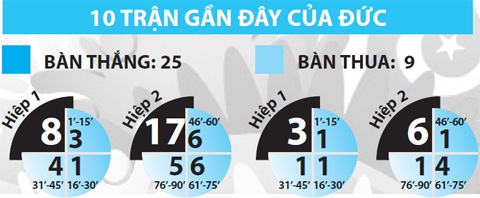 5/6 trận gần đây của Mỹ có từ 3 bàn thắng trở lên. Trong khi 14/18 trận gần nhất của Đức có từ 3 lần lưới rung trở lên.
