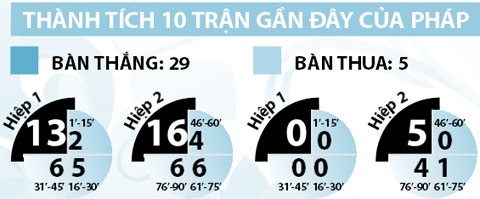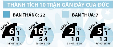 6/7 trận gần đây của Đức có hiệp 1 kết thúc với tỷ số 0-0. 3/6 trận gần đây của Pháp cũng không có bàn thắng trong hiệp 1.