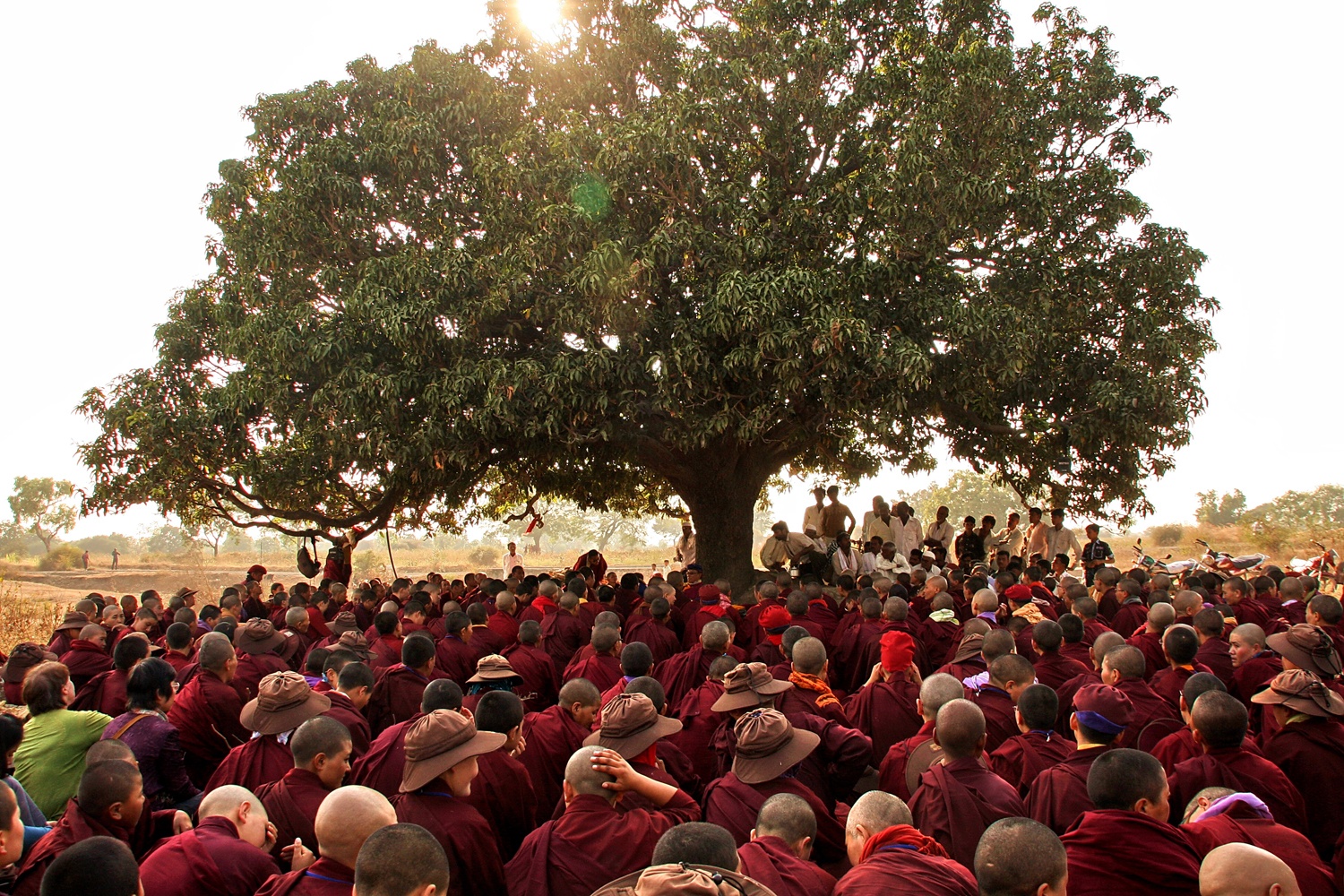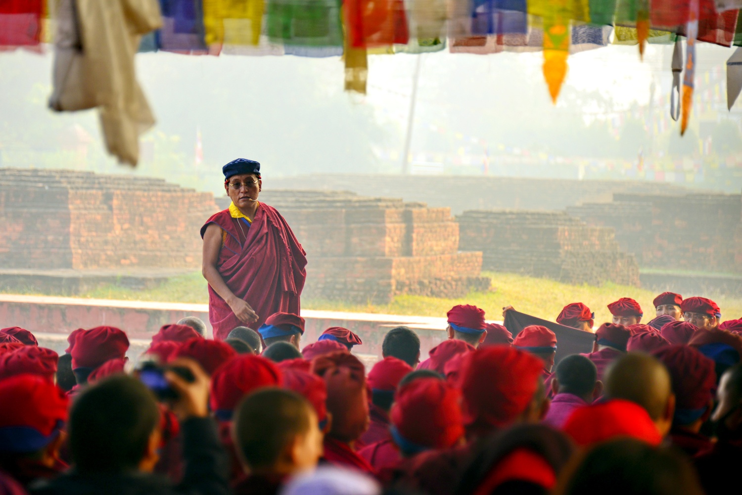 Gyalwang Drukpa thuyết pháp trong ánh bình minh bên bờ sông Hằng.