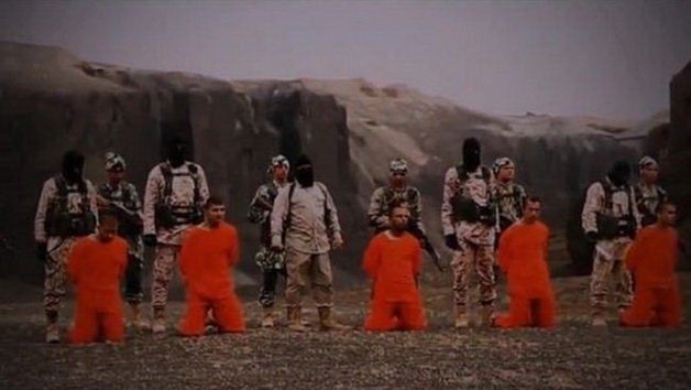 | Hình ảnh từ video công bố ngày 25/6 cho thấy những người sắp bị IS hành quyết gần Damascus. Ảnh: Press TV |