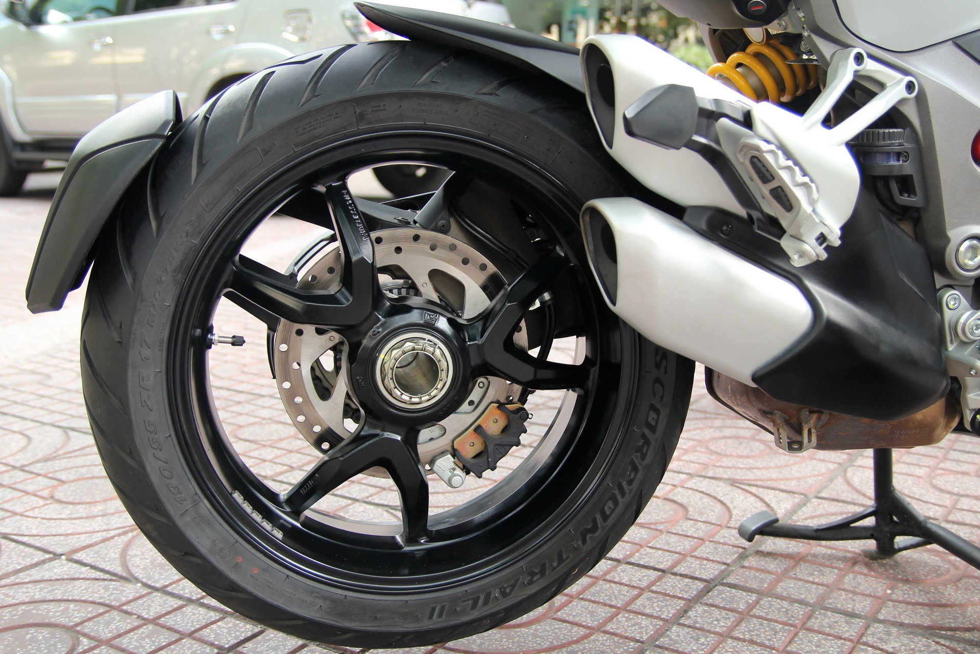 Xe sử dụng cặp lốp Pirelli Scorpion Trail II 120/70 - 17 bánh trước và Pirelli Scorpion Trail II 190/55 - 17 cho bánh sau.