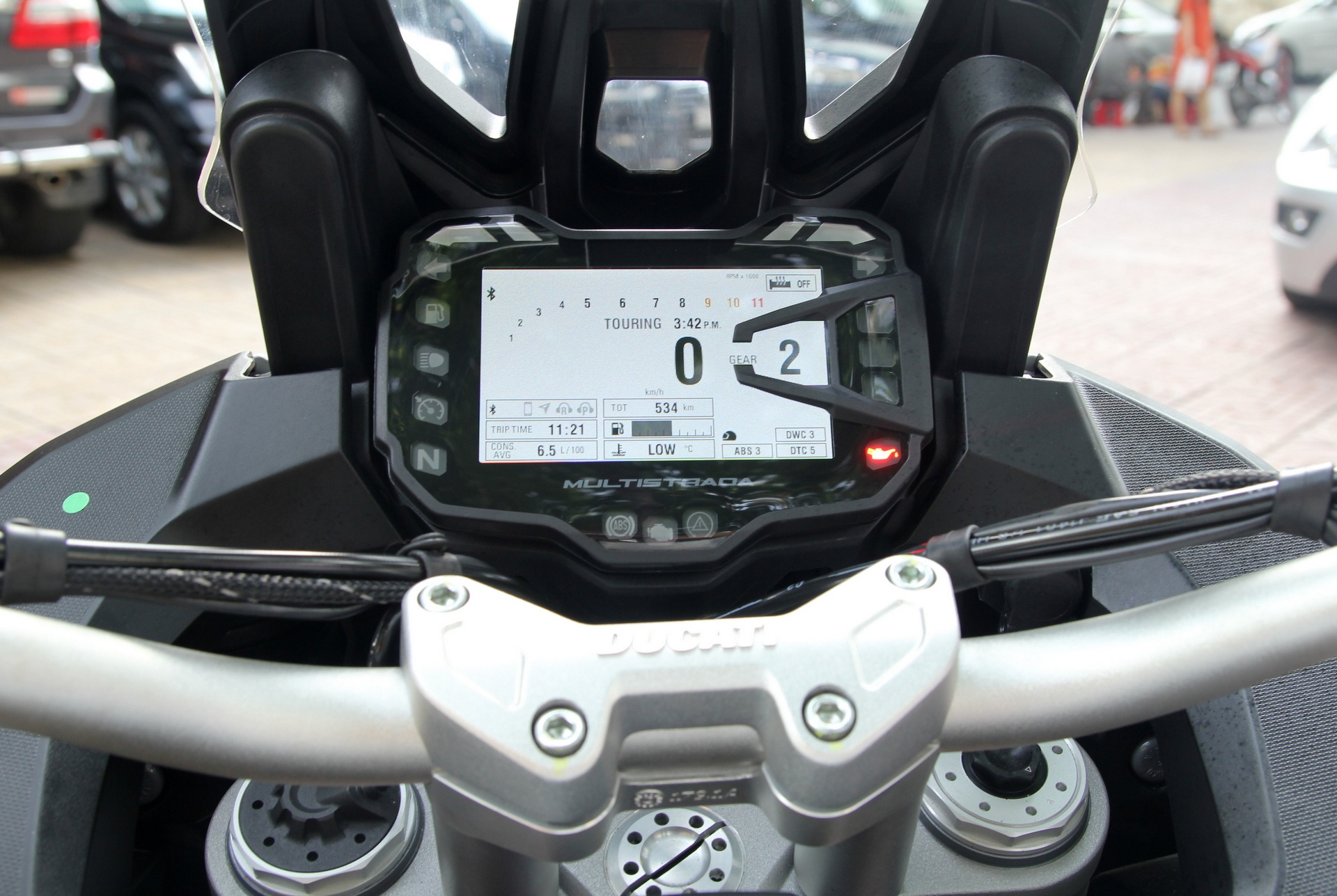 | Tương tự những chiếc xe dòng Adventure hiện đại khác, Multistrada 1200S có hệ thống điện tử hiện đại. Màn hình LCD hiển thị các thông số như tốc độ, số đang gài, lượng xăng tiêu hao... Đặc biệt, xe được tích hợp tính năng bluetooth, cho phép người lái và hành khách nghe nhạc thông qua tai nghe không dây khi đang chạy trên đường. Ngoài ra, màn hình này cũng có giao diện điều chỉnh chế độ chạy như Sport, Touring, Urban, Enduro. |