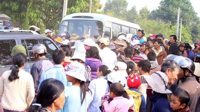| Ngay từ sáng sớm, hàng trăm người dân đã kéo tới ngôi nhà nuôi gia cầm của vợ chồng ông Hồng và bà Hợp tại thôn 4, xã Tà Nung để xem cơ quan chức năng dựng hiện trường vụ án mạng. Trong suốt 30 phút dựng hiện trường, kẻ giết người tỏ ra bình tĩnh trước cán bộ điều tra và hàng trăm người dân. |