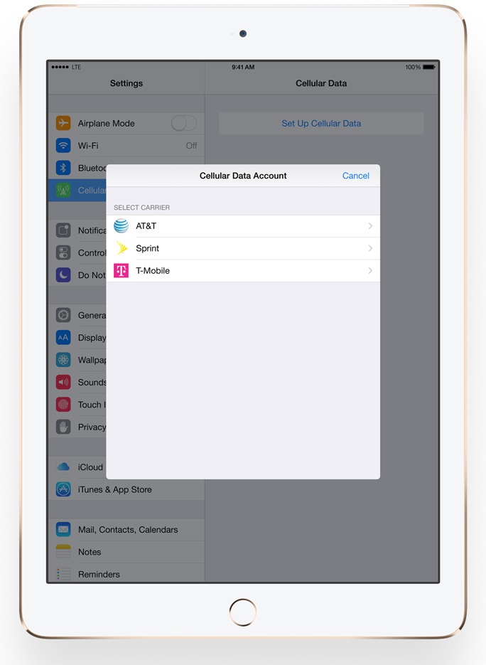 Hiện tại tính năng chọn nhà cung cấp di động ngay trên iPad mới chỉ nhận được sự ủng hộ từ 3 nhà mạng của Mỹ (AT&T, T-Mobile, Sprint) và nhà mạng EE của Anh.
