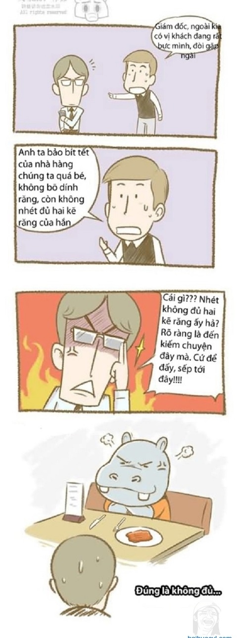 Nhịp sống Cười Đúng là khe răng quá lớn Thứ hai, 9/2/2015 08:58 (GMT+7) 08:58 9/2/2015 Nhân viên bồi bàn gọi người quản lý nhà hàng sau khi tiếp đón một vị khách khó tính. Bà sẽ trả tiềnTên chủ quán ma mãnh định lợi dụng sự ngây thơ của cô bé mua hàng, nhưng gã không ngờ bà của cô bé cũng đi cùng em. 15:49 15/12/2014 An Ngọc nhà hàng vị khách ngoại cỡ quản lý tư vấn Đọc tiếp Thánh hít 10:09 14/12/2014 10:09 14/12/2014 5 5 32 Một ông mù bước vào nhà hàng và nói chủ quán đem vài cái muỗng, nĩa chưa rửa trong bếp cho ông ta ngửi để ông ta gọi món. Mẹo cắt tóc miễn phí 09:53 13/12/2014 09:53 13/12/2014 2 1 1 21 Một người dắt đứa bé trạc năm, sáu tuổi vào hiệu cắt tóc sang trọng. Ông ta tỏ vẻ vội vàng và bảo người thợ cắt cho ông trước rồi cắt cho thằng bé sau. Đàn cừu chạy quanh ô tô 09:50 13/12/2014 09:50 13/12/2014 2 1 1 15 Một đàn cừu chạy xung quanh chiếc xe như thể chúng đang tung hô một nhân vật nổi tiếng. Bạn có thể quan tâm