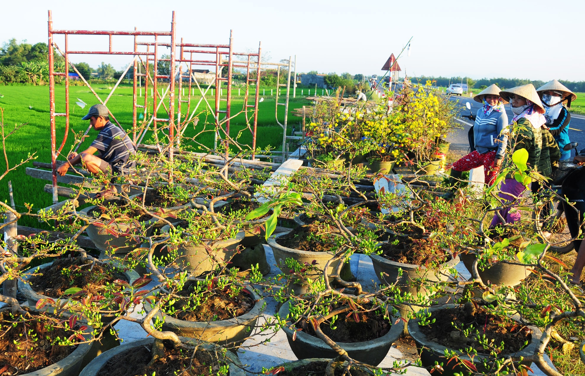 , ông Nguyễn Thành Long (ngụ phường Nhơn Hòa, thị xã An Nhơn) cho hay, gia đình có 100 chậu mai bán tết nhưng thời tiết nắng nóng kéo dài khiến hoa nở hết 50%. "Tôi và các con bàn tính dựng lều bên quốc lộ 1 hy vọng số chậu mai còn lại được giá cao vớt vát lại vốn liếng đầu tư, công sức chăm sóc cả năm qua", ông Long bộc bạch.