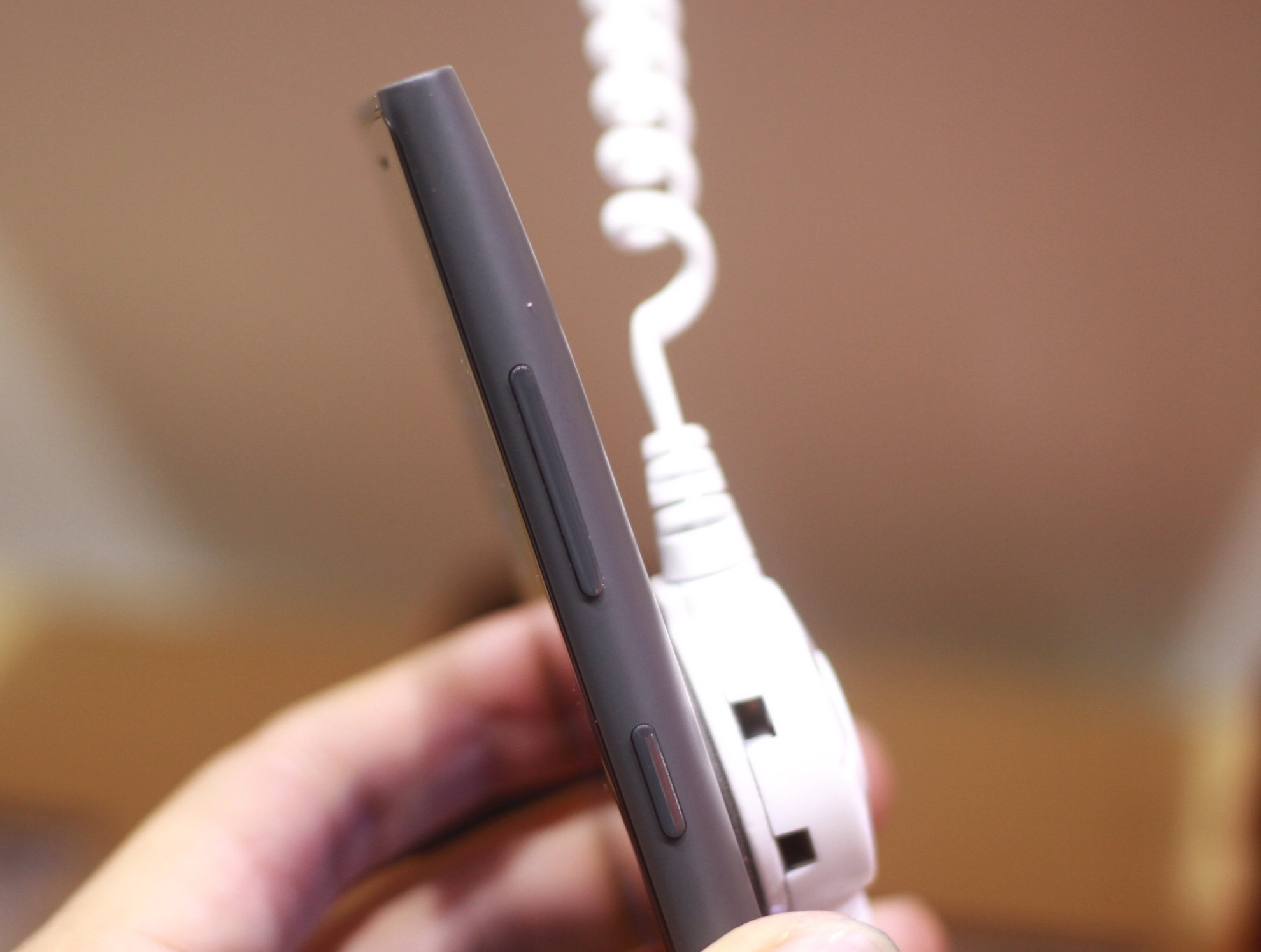| Cạnh phải là nơi bố trí nút nguồn, tăng giảm âm lượng. Máy không có phím chụp ảnh như một số sản phẩm trước đây. |
