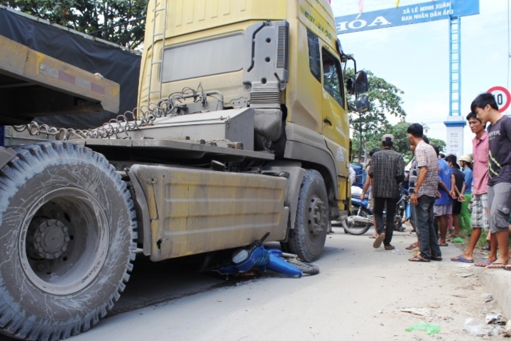 Khi đang lưu thông trên đường Mai Bá Hương thì nạn nhân bị xe đầu kéo đổ dốc cầu Xáng tông trực diện rồi cuốn cả 2 người cùng phương tiện vào gầm.