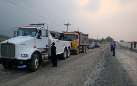 Trái lại, trong các gara ô tô, cây xăng dầu, bãi đất trống ven đường, lại có rất nhiều xe Howo 3 chân, 4 chân chở đầy đất đá nằm chờ nhiều giờ liền.