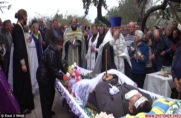| Mọi người xót thương đến tiễn đưa "người khổng lồ" về cõi vĩnh hằng. Stadnyk "cầm" một cây nến khi một linh mục đứng bên cạnh. |