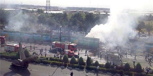 Phần đuôi chiếc máy bay nằm gần một ngã tư ở thủ đô Tehran. Ảnh: ISNA |
