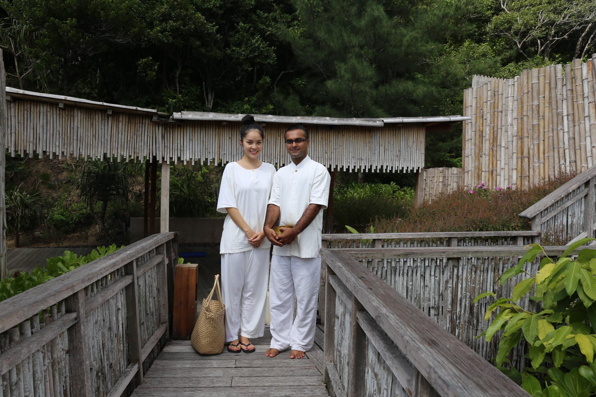 | Dương Cẩm Lynh và thầy dạy thiền. |