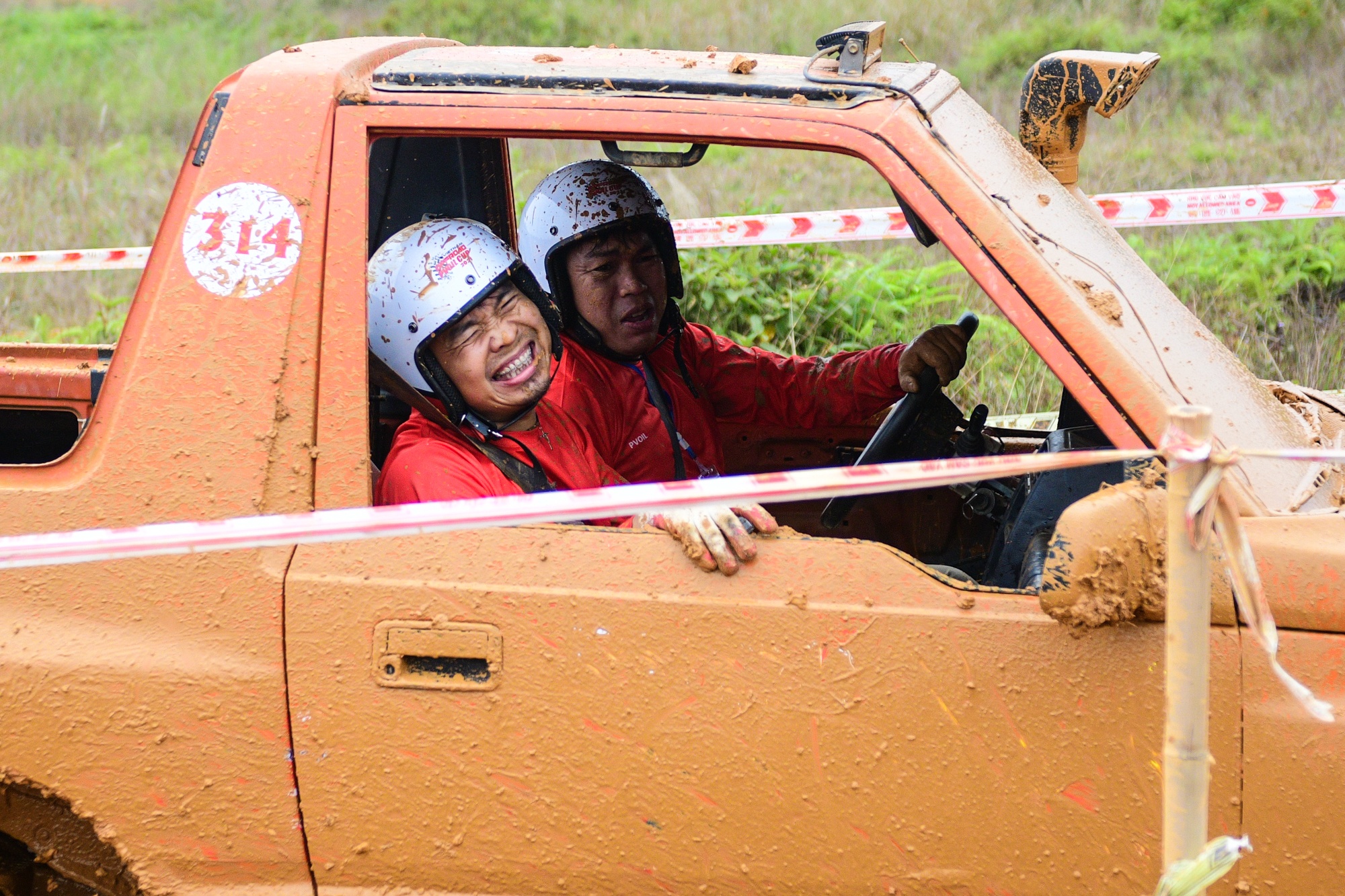 Nước tràn vào trong, xe chết máy, thụt hố, vỡ kính, hỏng đèn... là hàng loạt những khó khăn các VĐV gặp phải suốt 8 tiếng trong rừng. Những đội theo sau vừa quan sát bản đồ, vừa lần theo vết xe, vết bùn mà những đội đi trước để lại.