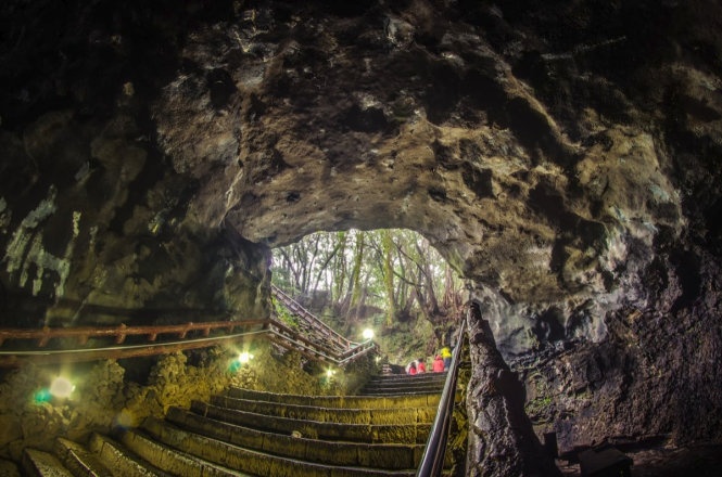 không ít du khách đến với đảo thiên đường Jeju. Một đoạn đường hầm nham thạch trong hang Manjanggul. Ảnh: Flickr. |