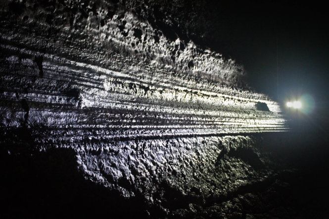 | Dấu tích dung nham bên vách đường hầm. Ảnh: Wordpress. |