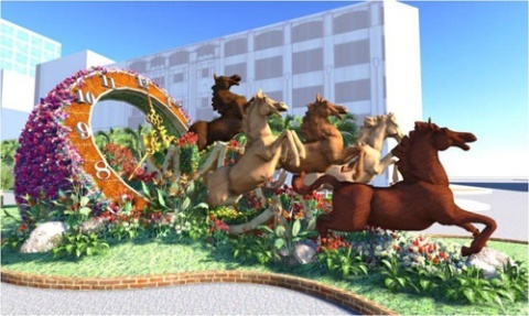 | Mở đầu đường hoa Nguyễn Huệ với đại cảnh 'Dòng thời gian' với đại cảnh đàn ngựa tung vó. |