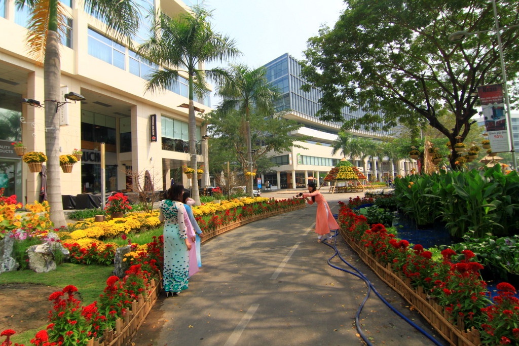 Dù chưa chính thức khai trương nhưng đường hoa dài 700m ở khu đô thị Phú Mỹ Hưng vẫn nhộn nhịp, bởi giới trẻ nhanh chân đến tham quan, chụp hình.
