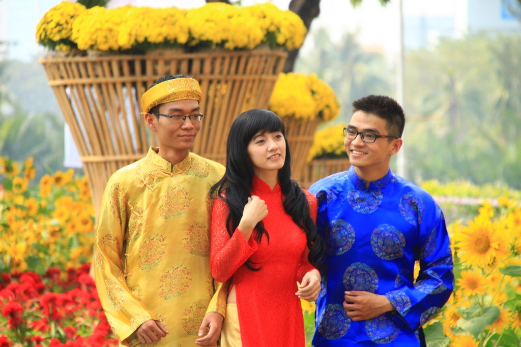 Teen Sài thành ngày càng hướng về những giá trị truyền thống. Rất nhiều bạn thích thú diện áo dài, khăn xếp để chụp hình.