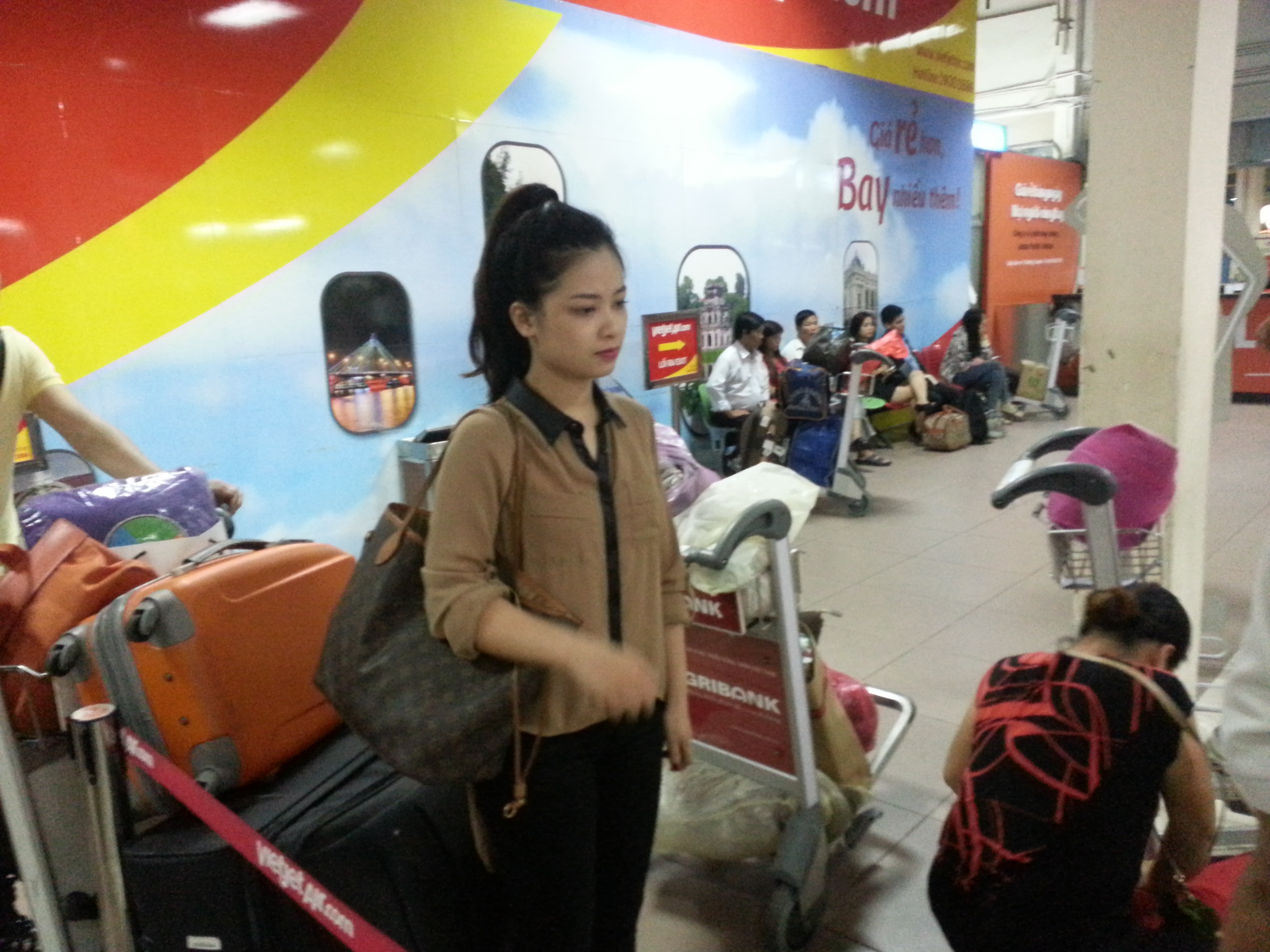 | Thời gian vừa qua, Hoàng Yến chủ yếu sống tại Sài Gòn để tập trung cho việc luyện tập cùng HLV Mỹ Linh và ban nhạc. Thế nên khi trở lại Hà Nội, cô mang theo rất nhiều hành lý. Bạn trai chủ động giúp Hoàng Yến xếp đồ và đẩy xe hành lý đầy ắp. |